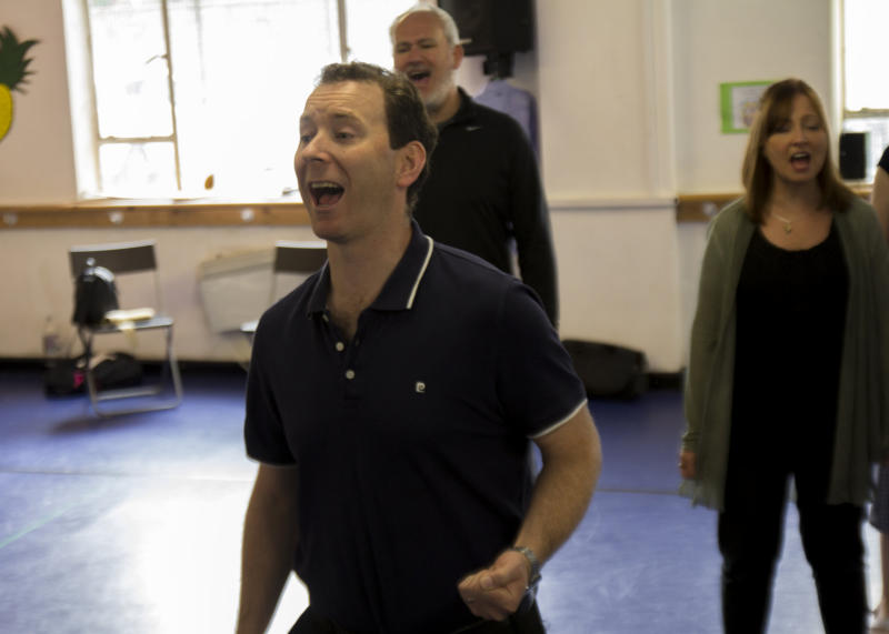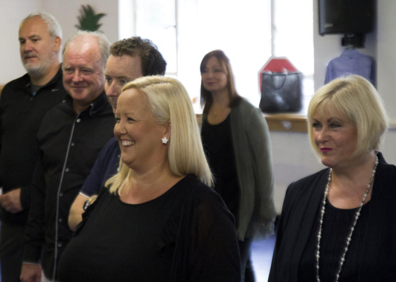 Julie, Esther and Janis at Bobath HQ Our Sound Engineer hard at work on the CD recording A job well done - we relax after recording our chart topping (sic) CD! Christmas Dinner 2016 at our favourite haunt - da Claudio in Motherwell. We missed you Janis and Joanne! Joanne wants the men to jump this far! Carol might be thinking it's a step too far! Jonathan: "I've to stand over there?? That's in the wings!" Joanne has just asked Carol and John to do a pas-de-bas! The men discuss industrial action when they hear about Chitty Chitty Bang Bang! Carol: Why does Esther always get the high part?? Look! Esther and Carol have got the difficult moves! Julie: "Janis, I've got to climb up on your shoulders!" I'm happy to go to the front, Joanne!! Can you people not do what you're told! It's not hard! If all else fails, Kirsty's book will keep us right! "Julie, no! You're supposed to be going this way. I'm a traffic cop!" Lookin' UP! A serious pose! Lookin' DOON! Another serious pose!